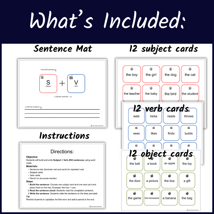 ✔ Word cards (subjects, verbs, objects)