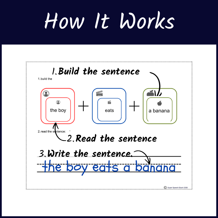 A simple way to support sentence development is by focusing on Subject + Verb + Object (SVO) structure.